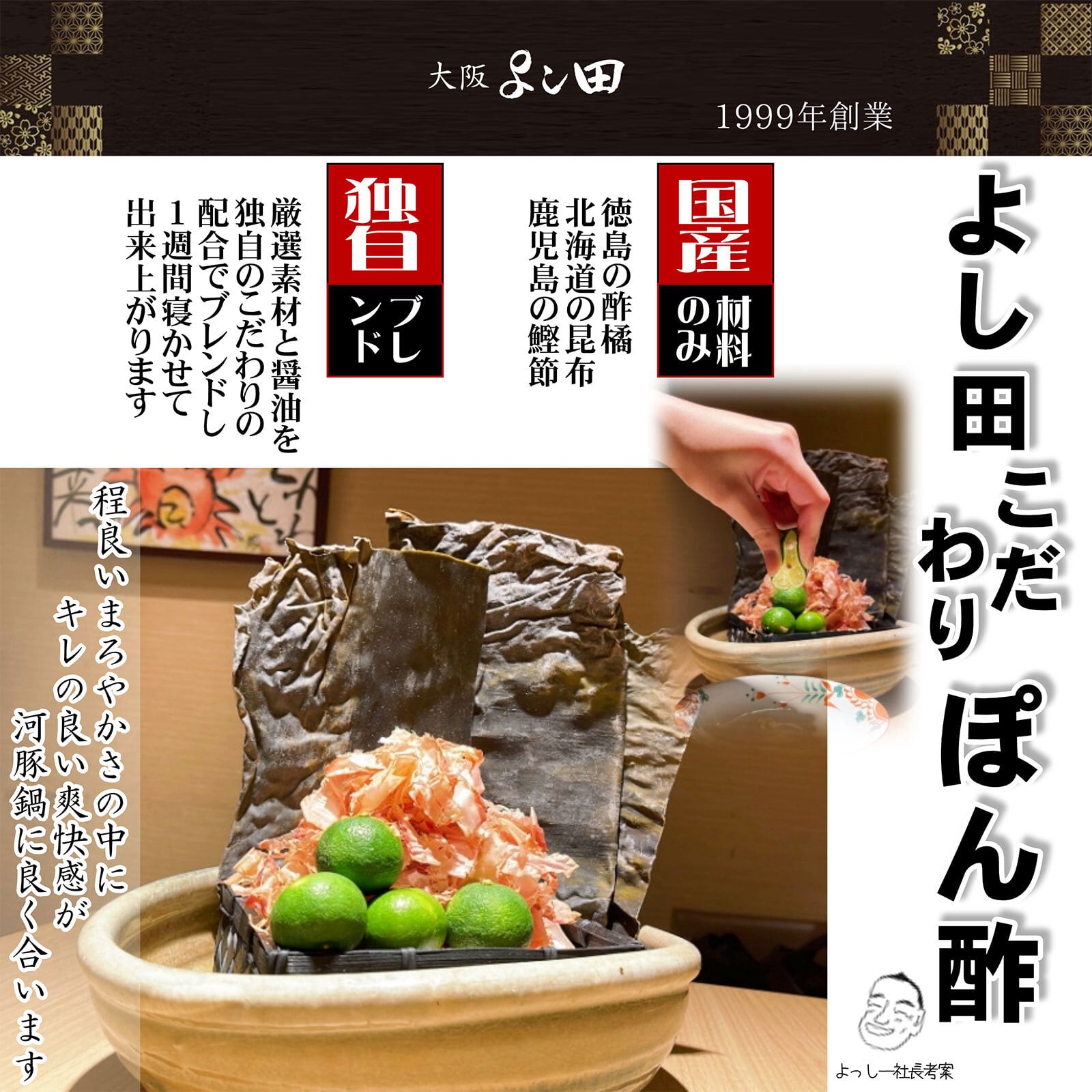 徳島の酢橘、北海道の昆布、鹿児島の鰹節と厳選素材を独自のブレンド配合し1週間寝かせて